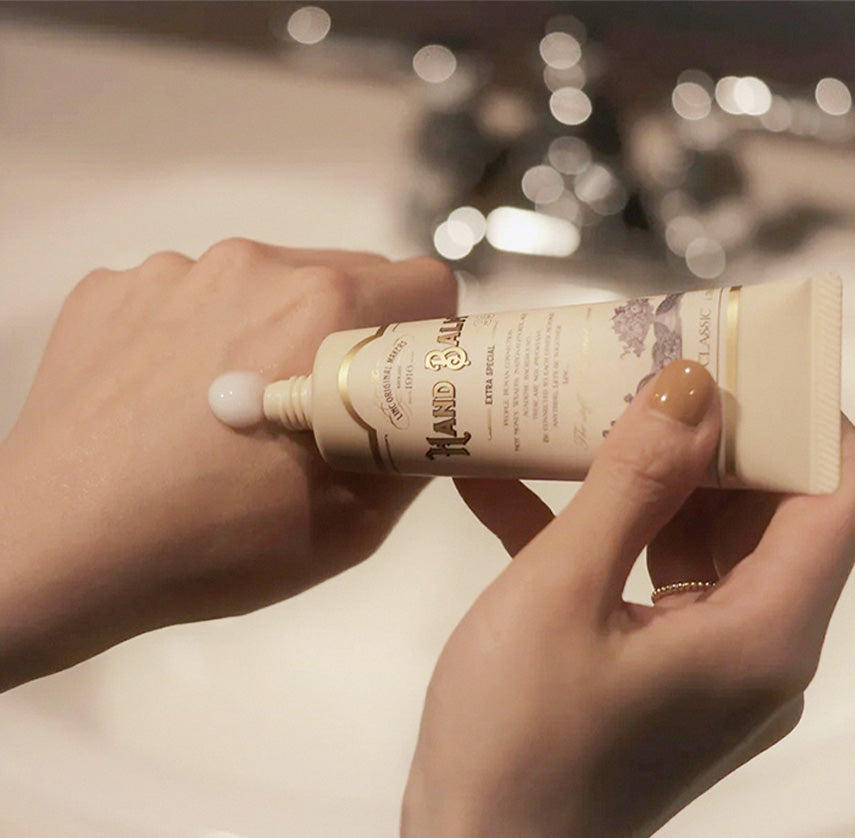 リッチで滑らかなテクスチャーが、手元や指先を優しく包み込む手肌のためのハンドバーム。