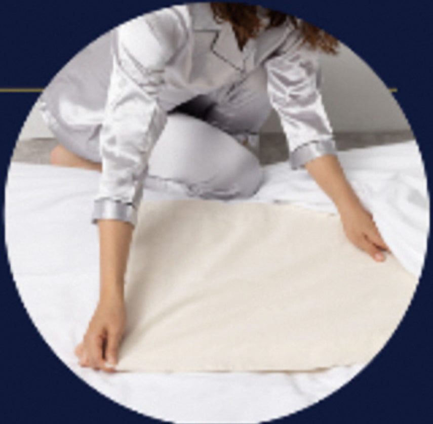 “G-ZERO COIL PILLOW SHEET” と “G-ZERO COIL BODY SHEET” に装着された アンペールの法則構造コイル“G-ZERO COIL(特許取得済)”。 頭部や背中〜腰部まわりで、電磁波を吸収し、マイクロカレント(微弱電流)を発生させ、 睡眠の質の向上や睡眠時におけるボディ・コンディショニングをサポートします。