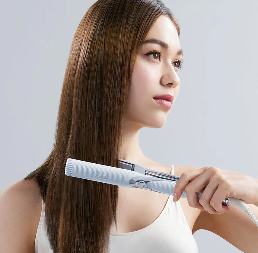 独自の技術 「カーボンレイ ヤープレート」 が、ストレートアイロンによる水・熱・圧のダメージを抑えながら、 髪を美しく整えるプロの“レア髪ストレート”を実 現します。