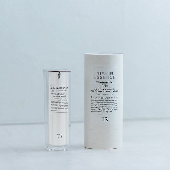 高い技術力をもつパートナー各社の開発力を結集したオンリーワンスキンケアシリーズ「T’s」から、その第一弾となる美容液『ナイアシン*エッセンス』が誕生しました。
